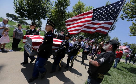 Recouvert du drapeau américain, David Rosenkrantz a été inhumé au cimetière national de Riverside en Californie, à côté de ses quatre autres frères. Plus de 30 membres de sa famille étaient présents.