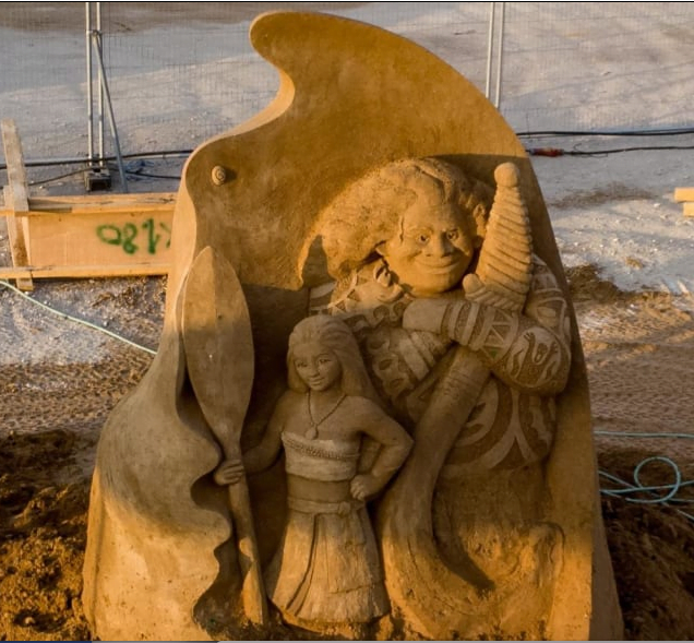 La Petite Sirène, Moana, La Belle et la Bête, Aladin et bien d'autres personnages de Disney occupent actuellement la plage de Bar Kochba à Ashkelon, pour célébrer le premier festival international de sculpture sur sable d'Ashkelon.