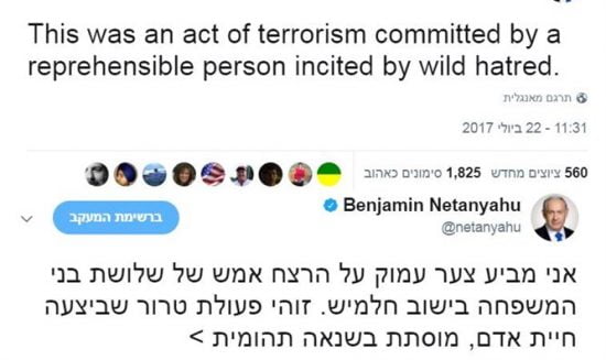 Le tweet en langue anglaise du Premier ministre Binyamin Netanyahu, samedi matin en réaction au massacre de trois membres de la famille durant leur repas Shabbat, était tout à fait différent de son tweet en langue hébraïque.
