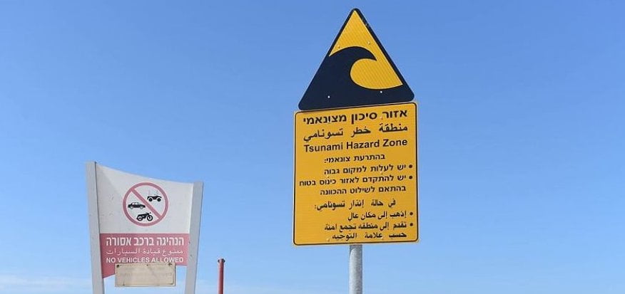 La municipalité de Bat Yam et la National Emergency Authority ont commencé à déployer des panneaux d'avertissement de danger de tsunami sur les rives de la ville en cas de tremblement de terre.