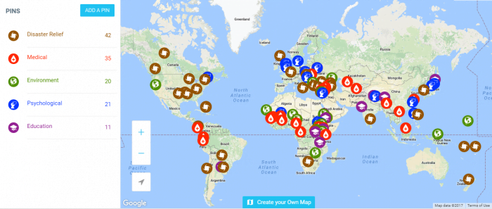 Pourtant, en dépit de tant de missions, on sait peu de choses sur l'incroyable travail d'aide mené par Israël. Il y a un an, le site ISRAEL21c a décidé de faire quelque chose à ce sujet et a créé la carte d'aide d'Israël: Israel Aid Map. C'est une façon phénoménale de montrer au monde entier l'étendue de l'aide israélienne.