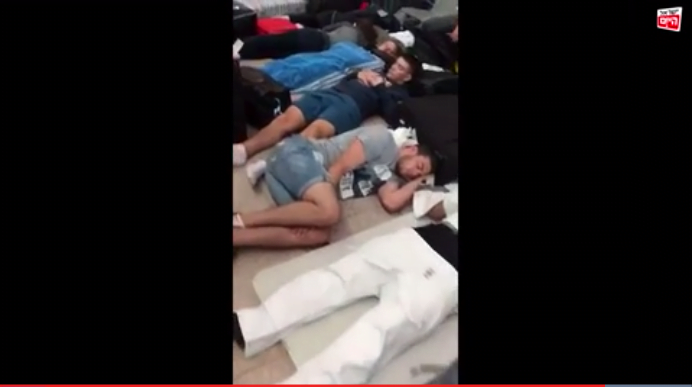 Les athlètes sont arrivés à l'aéroport jeudi à 11 heures et ont dû rester sur place jusqu'à tard dans la nuit, heure à laquelle on leur a annoncé qu'ils pouvaient se rendre à l'hôtel. Après avoir réalisé que l'hôtel se trouvait à environ deux heures de route de l'aéroport, ils ont décidé de dormir sur le sol du terminal.