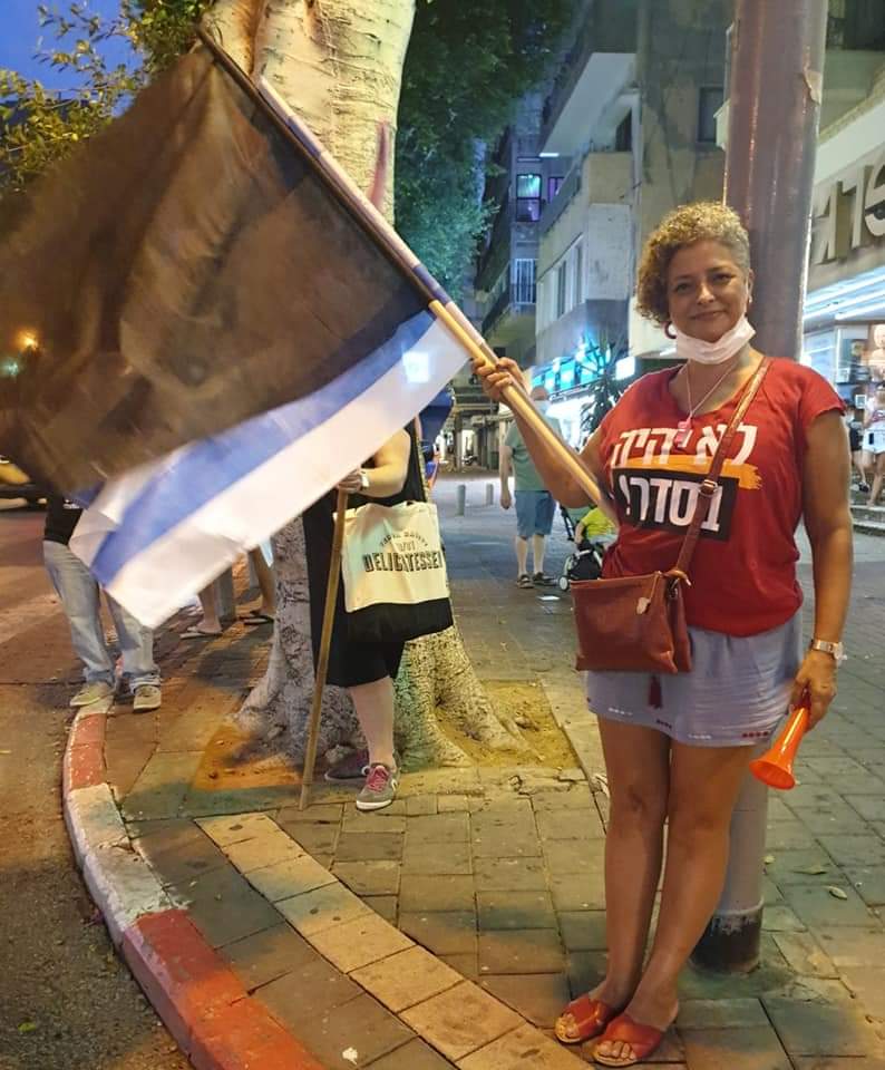 Mon amie, Galia C., hier soir lors de la dernière manifestation sur Kikar Rabin