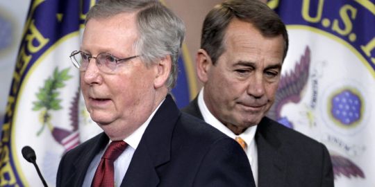 John Boehner, à droite, et Mitch McConnell, à gauche, lors d'une conférence de presse, le 3 novembre 2010. AP/J. Scott Applewhite