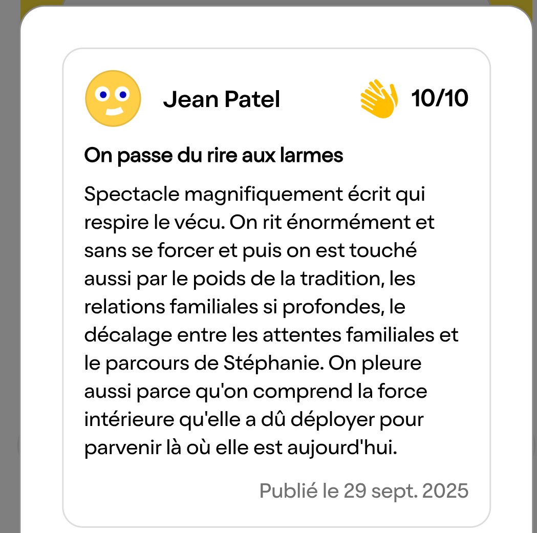 « Un spectacle écrit qui respire le vécu », salue Jean Patel.