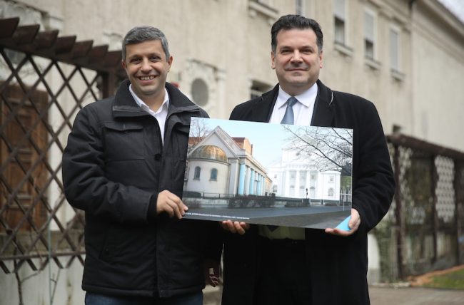 Par une froide matinée de mars, devant la synagogue Fraenkelufer, le sénateur et leader du parti social-démocrate a annoncé des plans pour la reconstruction d'un bâtiment qui a été en grande partie détruit dans le pogrom de la Kristallnacht de 1938.