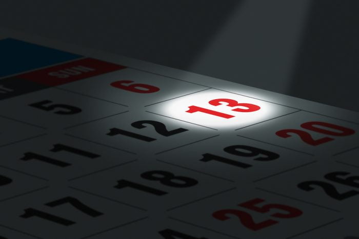 Le vendredi 13, nous scrutons généralement le ciel à la recherche d’avions en passe de tomber, nous évitons les ascenseurs de peur qu’ils s'écrasent, nous frémissons au passage d'un chat noir et nous assistons avec stupeur à l’effondrement de nombreuses relations, professionnelles, sentimentales...