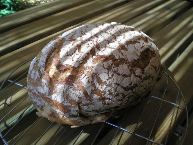 Préchauffez le four sur thermostat 180°C. Prennez un plat à cake beurré ou mettez une feuille de cuisson et déposez-y votre pain. Mettez au four pendant 45 minutes et démoulez dès la sortie du four.
