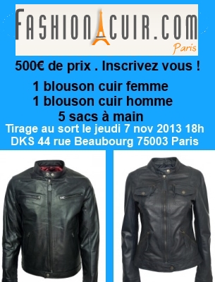 Alliance vous propose de gagner des blousons en cuir pour Homme et pour Femme , et des sacs en cuir. Alors à vous de jouer avec Alliance et Fashion Cuir .