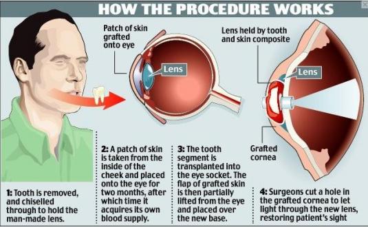 Mise au point en Italie dans les années 1960, la technique consiste à implanter une dent, préalablement sculptée et percée d'un petit trou, dans l'oeil du patient. La dent, ainsi que sa ­racine servent ainsi de support à une lentille optique.